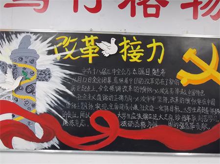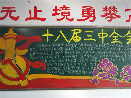 护理系各班级都积极配合,大多数班级采用PPT的形式向同学们展示了是十八届三中全会的内容及精神,并由各班辅导员为同学们进行讲解全会的指导思想,以及大学生应如何与现实结合并认清时代发展需要。护理系各班级围绕本次班会办出了许多内容丰富、主题突出的板报,将此次全会内容和精神进行了更好的阐述。至此,本次班会和板报评比活动圆满结束。