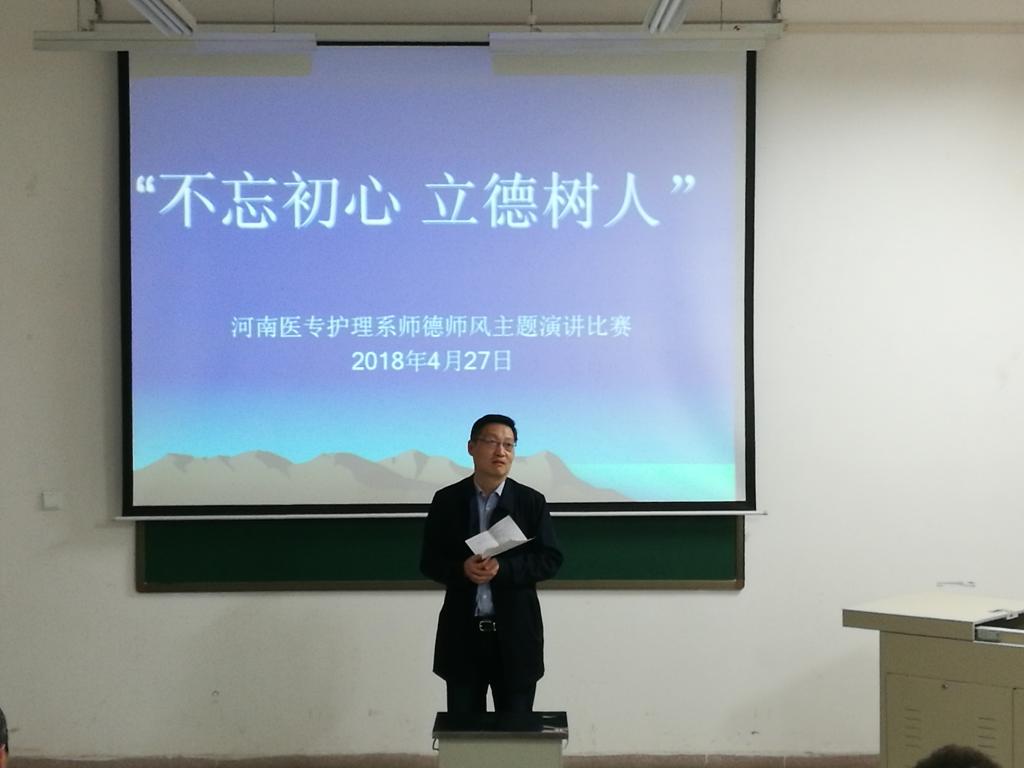 比赛开始王黎副校长进行讲话,他表示护理系是我校最大的专业,为公司赢得了许多荣誉,在落实教育厅“不忘初心,立德树人”师德师风教育活动中走在了最前列,希望各位选手赛出风采赛出成绩,预祝今天的演讲比赛圆满成功。