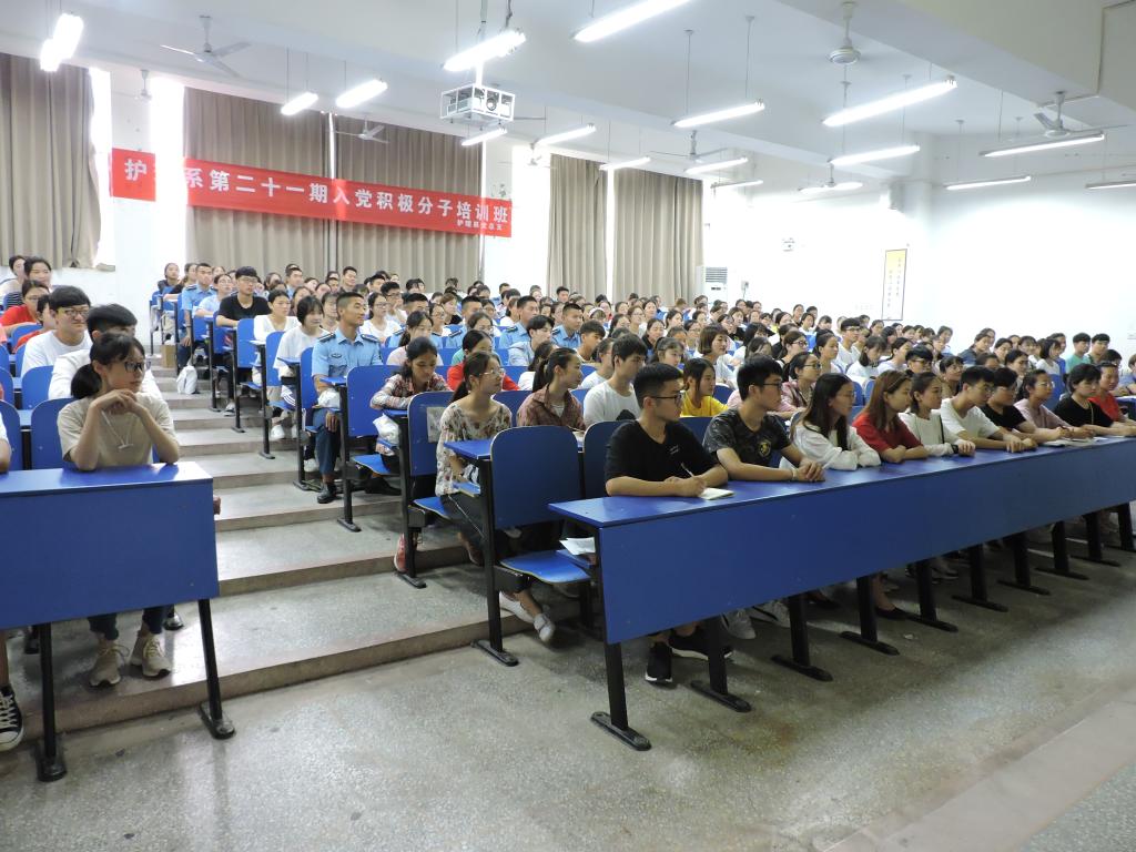 为提高入党积极分子们的思想道德素质和科学文化素质,加深同学们对民族精神的理解,我系于2018年5月18日中午12点30分在临床实训中心一号教室,邀请到药学系团总支副书记兼学工办副主任郑煊威为第二十一期入党积极分子讲解《弘扬民族精神和时代精神》。