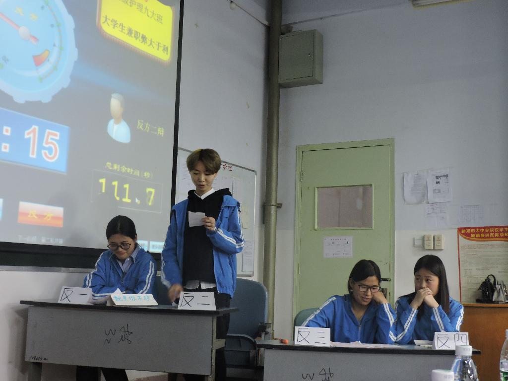 为了锻炼和加强大学生的思维逻辑和应变能力,使同学们在口才和交际方面有一定的突破和提高。护理系特举办此次辩论赛活动,本次活动分别于2017年4月23日和4月26日在教学一区110教室成功举办初赛和决赛。