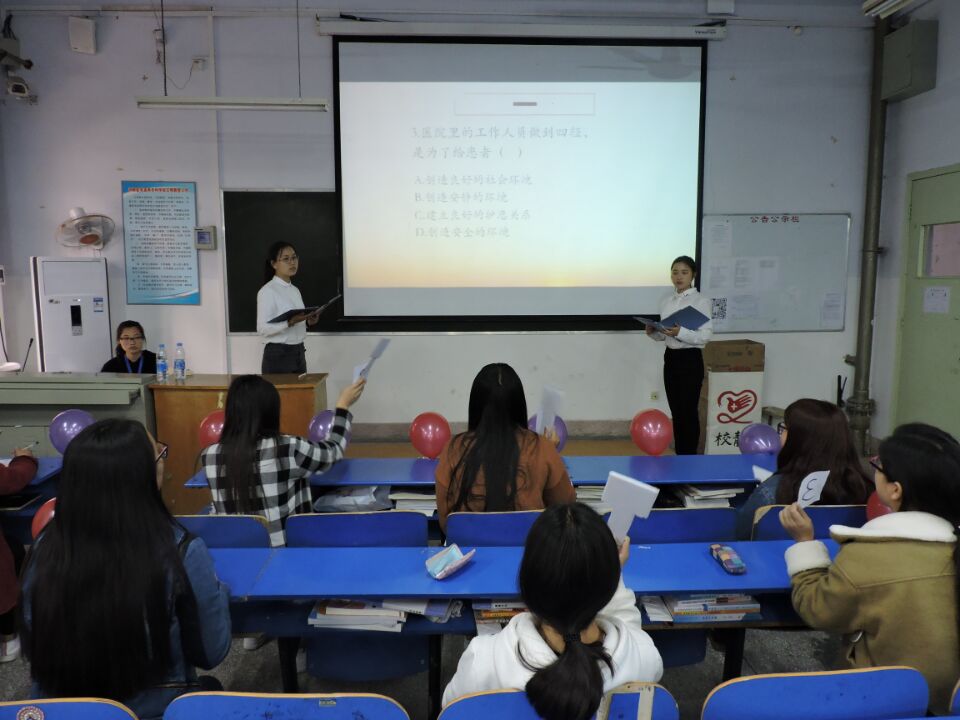为了营造良好的学习氛围,加强大学生专业知识的运用,丰富大学生的校园文化生活。护理系分别在2017年3月29日下午五点四十在教学一区104、105、109、204、206与4月6日下午三点半在109、110举办“知识荟萃,头脑风暴”知识竞赛活动的初赛和决赛。
