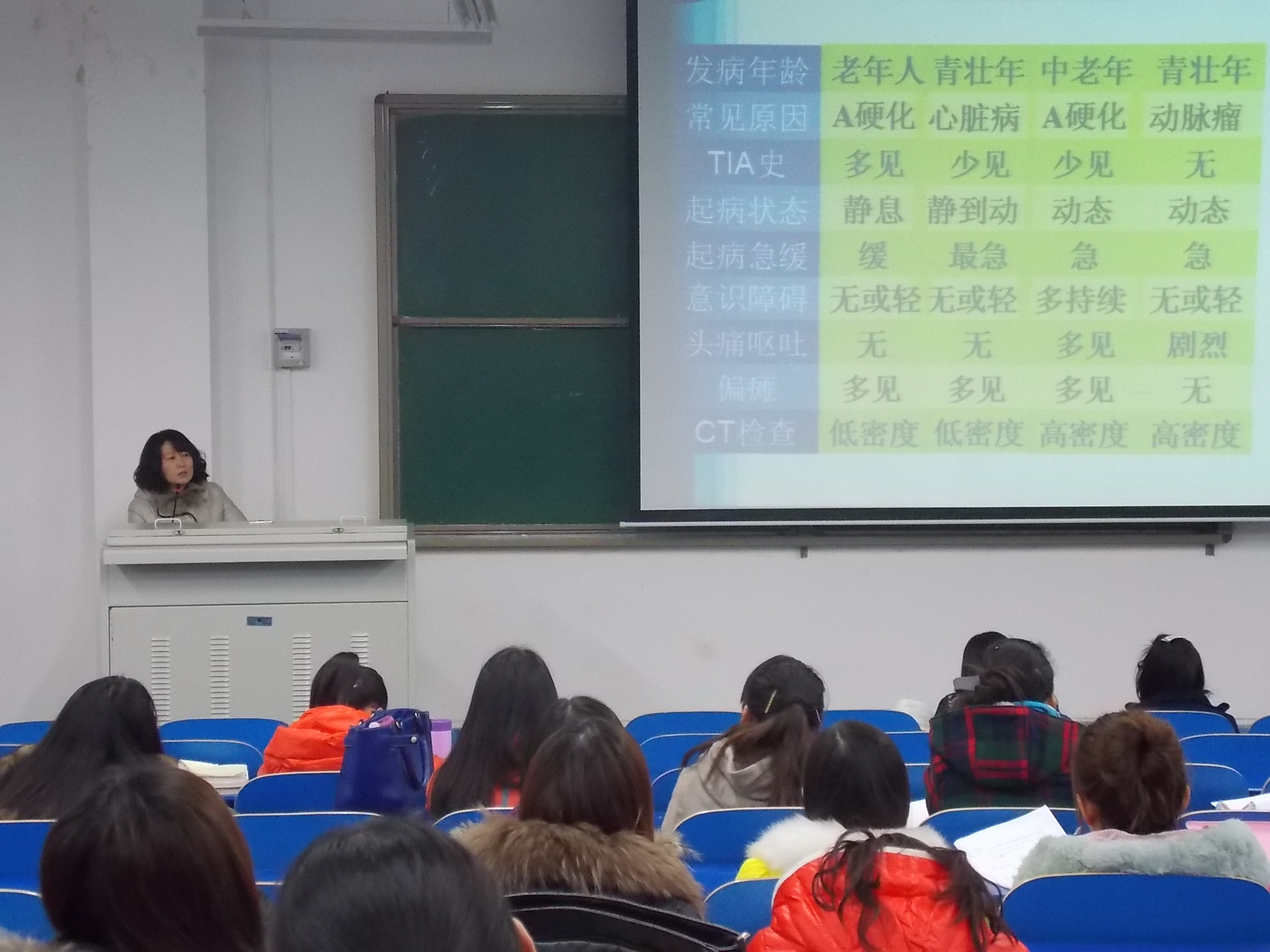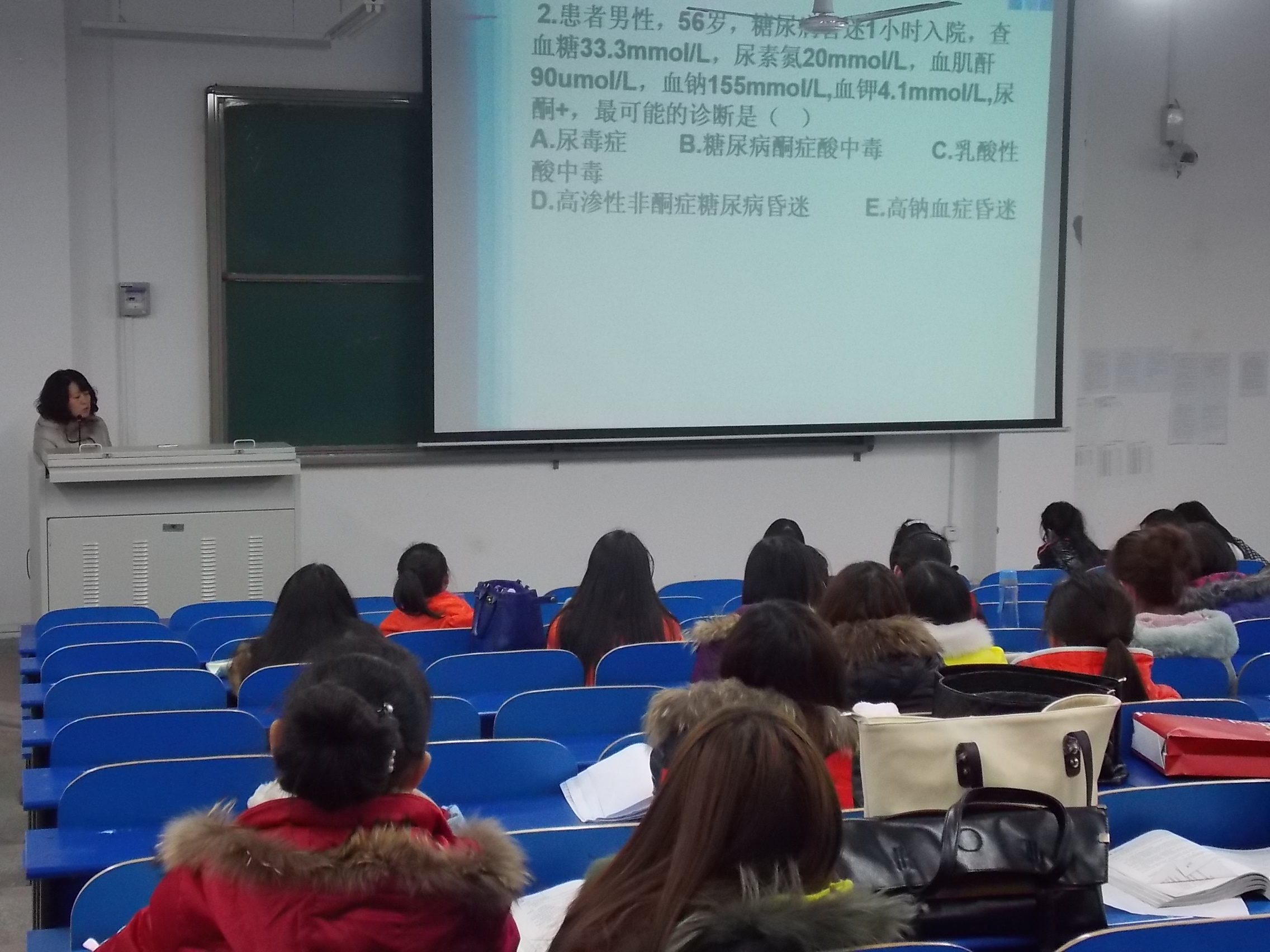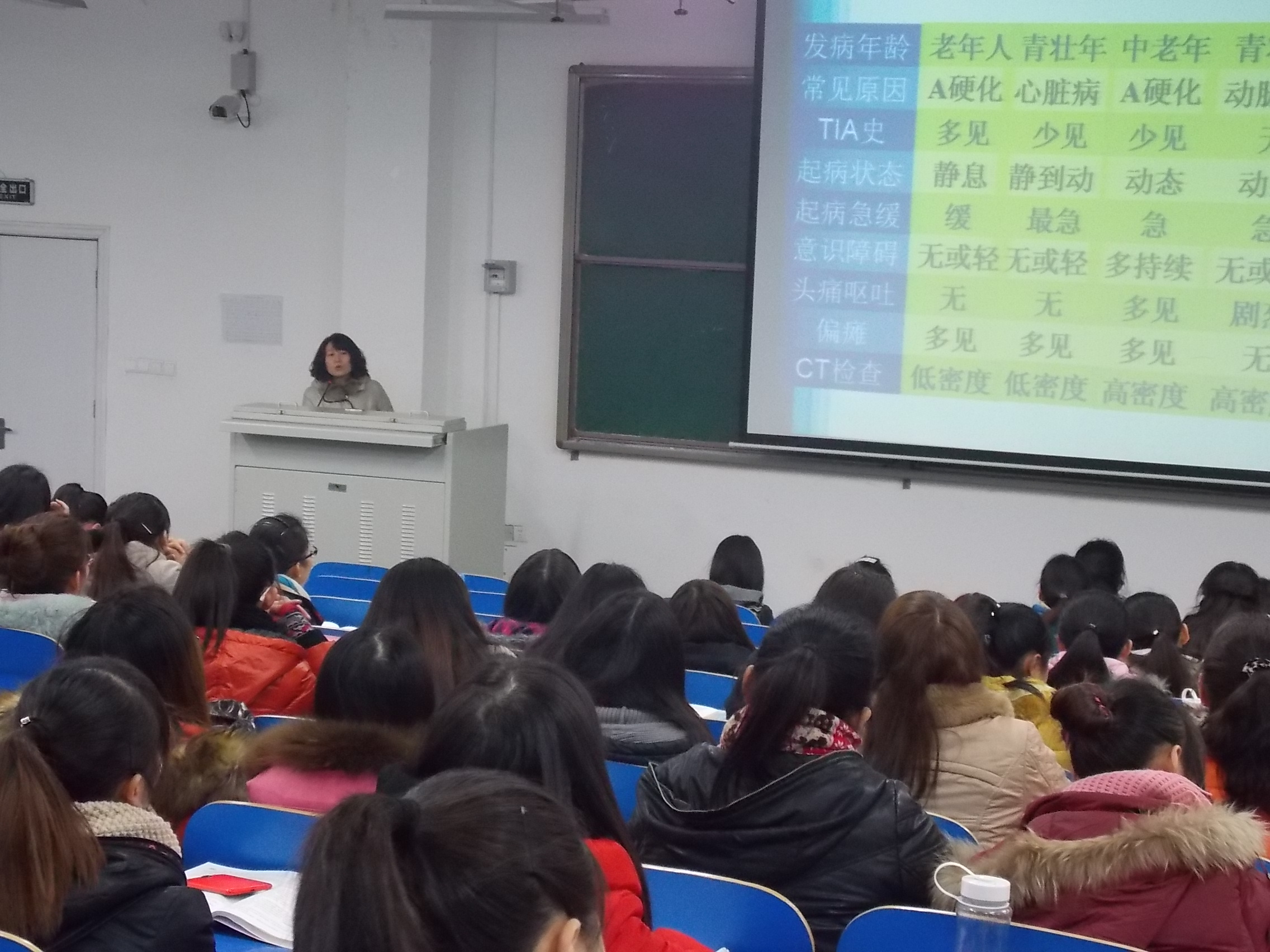 为加深学生对内护知识的了解,提高同学们的学习能力,掌握做题方法,2013年12月23日由护理系党总支举办、护理系学生会学习部承办的内护讲座在新实训楼一号教室成功召开。本次讲座的主讲人是董吉老师。