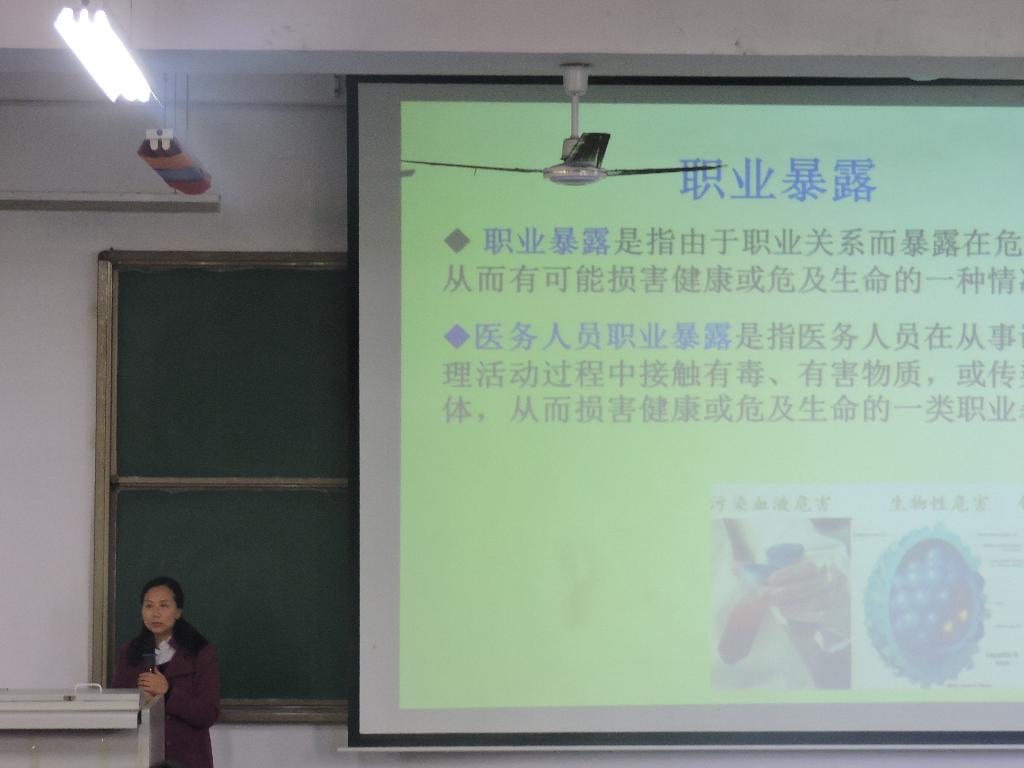 本次活动一经宣传就受到了学生们的大力支持和积极参与。讲座开始后,皇甫老师为我们详细讲解职业暴露为我们带来的危害和医务人员怎样避免意外事故的方法,并耐心指导学生们遇到血液类传染性疾病如何采取应急措施。学生们在讲座中认真听讲,并积极回应皇甫老师的互动,讲座现场气氛活跃,讲座结束后,学生们意犹未尽,纷纷讨论。