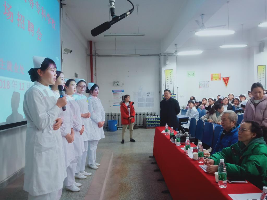 为切实做好我系毕业生就业工作,缓解我系毕业生就业压力,大力构建毕业生与用人单位的交流平台,积极为用人单位输送应用型人才。我校于2018年12月13日下午3:00在临床实训中心一楼举行应届生及往届毕业生招聘会。此次招聘会到场领导为招聘院方党委副书记蒙萍、医院办公室主任贾丽英等。我校领导对此次招聘会高度关心和支持,党委副书记吴平才、护理系主任王银燕等亲临会场并与我系学生交流。