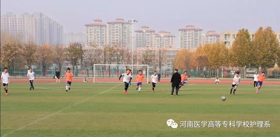 为丰富大学生的校园生活,展现青春活力,进一步增进同学之间友谊,提高同学的凝聚意识。我校于2019年11月23日在田径场举办“绿茵杯”足球比赛。