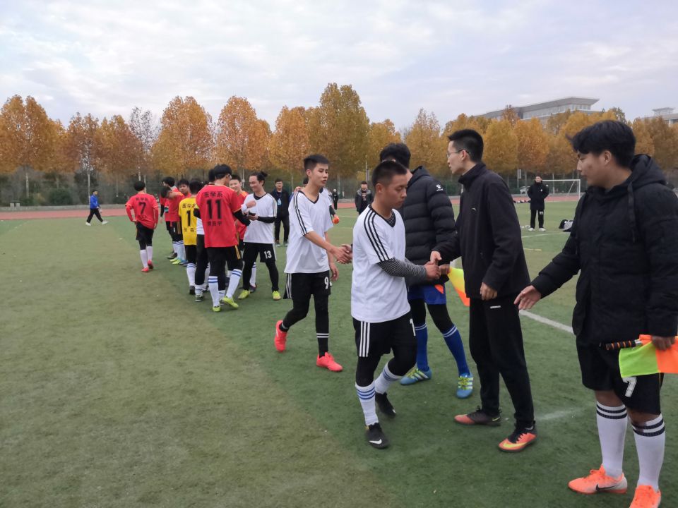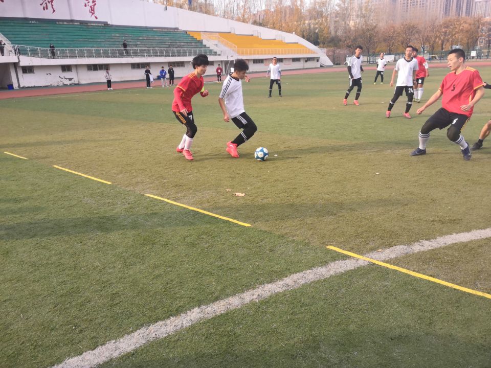 为丰富大学生的校园生活,活跃学习气氛,进一步增加同学之间友谊,提高学生的身体素质。我校于2019年11月28日在田径场举办“绿茵杯”足球比赛决赛。