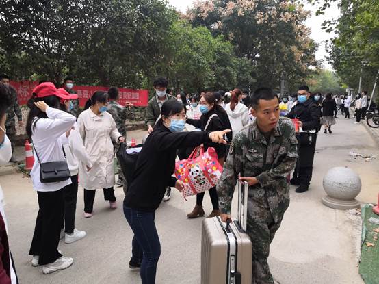 在疫情防控常态化的大背景下,今年新生报到时不允许车辆进入校园,因此护理系面向全系师生征集志愿者,短短一天之内,就征集到教职工党员志愿者24名,学生志愿者800余人。全体学生工作人员和志愿者在早上7点准时到达各个服务点,分布在大门口外、大门口内、人脸识别处、乘车区、宿舍楼下,为新生提供引导、搬运行李等服务。党员志愿服务和青年志愿服务成为今年护理系迎新工作中的一大亮点。