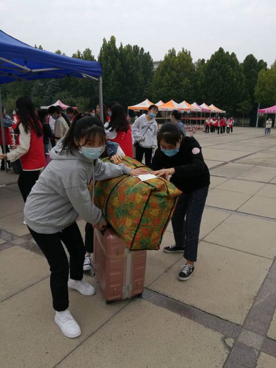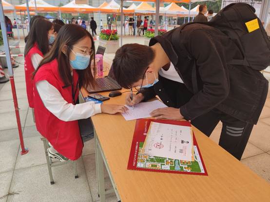 护理系全体师生在系领导许文生、王银燕的带领下,坚守岗位、无私奉献,齐心协力帮助新生有序、高效地完成报到工作。
