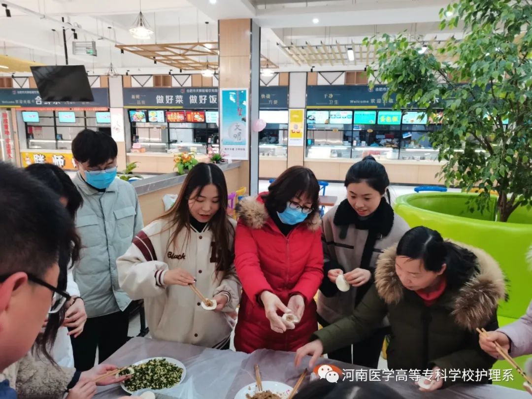 为了进一步弘扬民俗文化,传承民族习俗,彰显传统文化魅力,增进同学们之间的凝聚力和集体荣誉感。护理系于2020年12月18日在一餐厅二楼举行“冬至师生喜乐会”活动,护理系老师、全体学生会及社团成员参与。