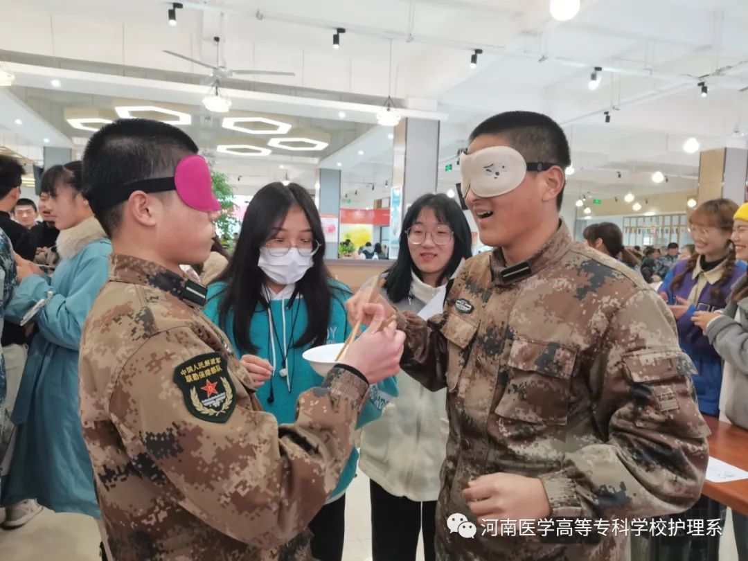 第二环节蒙眼吃饺子,各组派出三位代表,两位负责互喂饺子,一位负责指导。