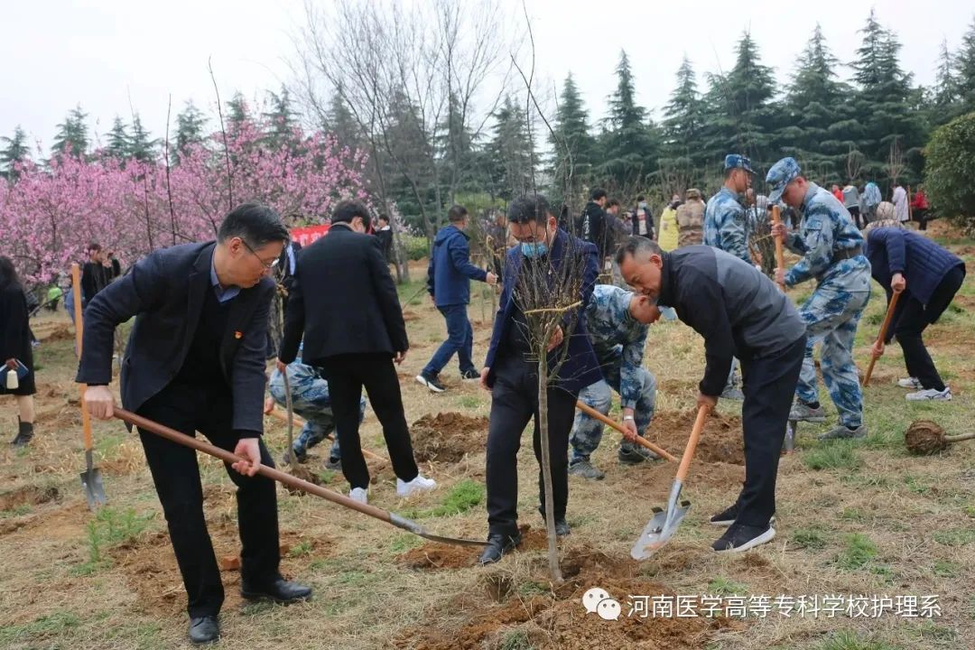 阳春三月来,草长莺飞间,冬天的寒意还未褪尽,春天带着绿色的气息向我们走来,2021年3月19日上午,我校组织开展义务植树劳动教育实践活动校党委书记花明、校长孙韬、党委副书记吴平才、副校长张进忠、护理系党总支书记许文生带领护理系全体辅导员以及全校学生代表共同参加了本次活动。